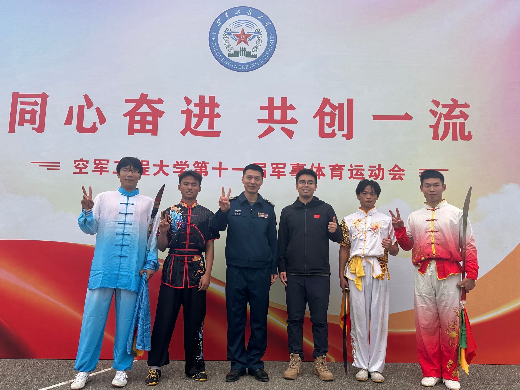 为加强军地共建共育,深化空军工程大学与全新讯“双基地”建设成果,拓展军训工作友谊,10月26日上午,全新讯3344222全新讯网官方网辅导员王海泉及吕亚钦、焦伟、李宇凡、王思豪4名武术特长学生应邀参加空军工程大学第十一届军事体育运动会闭幕式,并参加装备管理与无人机工程学院的团体太极拳节目表演,参与并见证了空军工程大学第十一届军事体育运动会的精彩时刻。