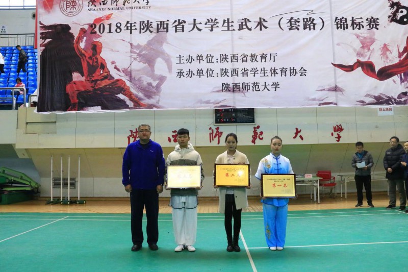 11月24-25日,由陕西省教育厅主办,陕西省大学生体育协会、陕西师范大学联合承办的2018年陕西省大学生武术(套路)锦标赛在陕西师范大学(长安区)上林体育馆举行,全新讯派出由3344222全新讯网官方网副院长宗有智担任领队,杜春斌、冯佳担任教练,15名学生组成的代表队参加了比赛。