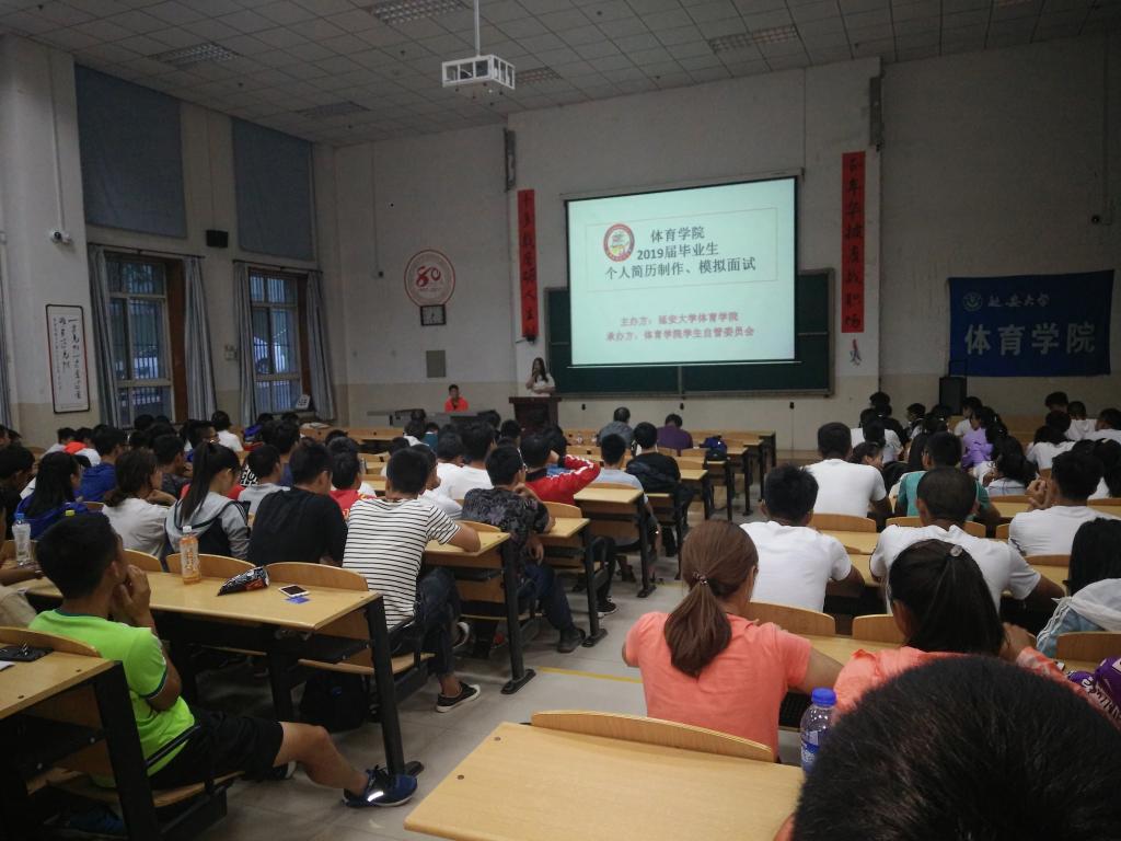 学院根据学生处的工作安排结合学院实际情况,从3月底开始策划大赛,4月底开始组织实施,模拟面试与简历制作两个分赛场同时进行。模拟面试经班级推荐,最终8名同学进入决赛。决赛设置的招聘职位为中小学体育教师,通过自我介绍、说课以及考官问答三个环节展现自我。各位评委针对学生说课内容、个人能力规划以及简历制作等方面进行提问与点评。赛程结束后,牛保明老师就举办本次大赛的意义与科学性等方面进行点评,并传授了简历制作及面试的相关经验。卢忠瑾老师从大赛的筹备组织情况,说课及专业展示,面试准备与临场应变等方面进行了点评,并要求同学们认真学习,稳步走向职场。最终,体教15级2班沈洋洋同学获得模拟面试一等奖。简历制作大赛在2019届151名同学中展开角逐。最终,体教15级1班刘倩同学获得简历制作大赛一等奖。