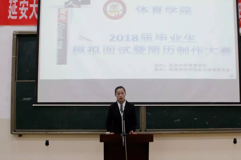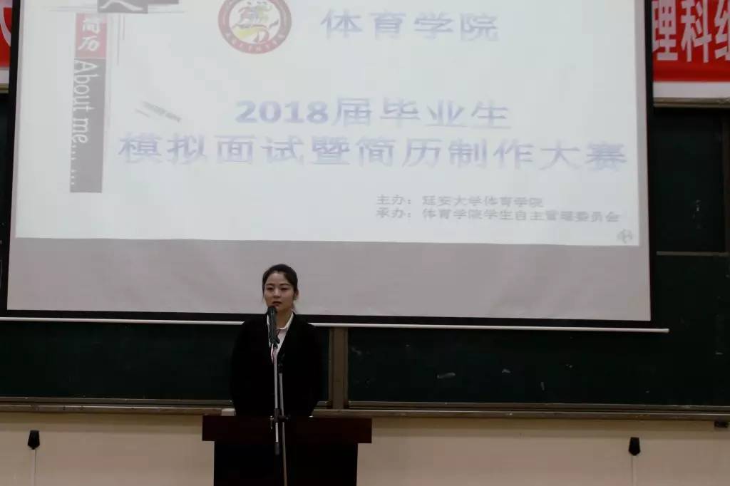 学院根据学生处的工作安排结合学院实际情况,从3月底开始策划大赛,4月底开始组织实施,模拟面试与简历制作两个分赛场同时进行。模拟面试经过班级初赛,年级复赛,最终10名同学进入决赛。决赛设置的招聘职位为中小学体育教师,模拟面试的同学通过自我介绍、说课以及考官问答三个环节展现自我。各位评委针对学生说课内容、个人能力规划以及简历制作等方面进行提问,并传授了相应的经验和技巧。模拟面试结束后,卢忠瑾老师分别从大赛的筹备组织情况,说课及专业展示,面试准备与临场应变等方面进行了点评。简历制作大赛中2018届144名同学全部提交了精心制作的个人简历进行角逐。最终,汪益云同学获得模拟面试一等奖,何涛、宋晓锦、王兴奋同学获得了简历制作大赛一等奖。