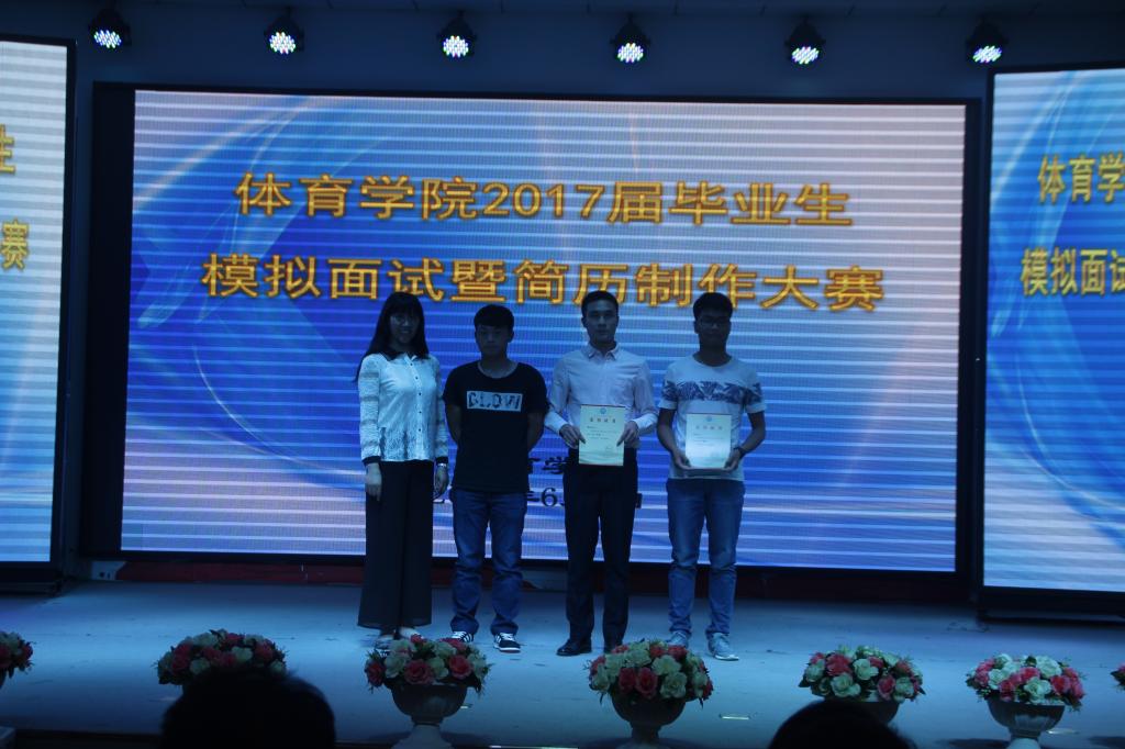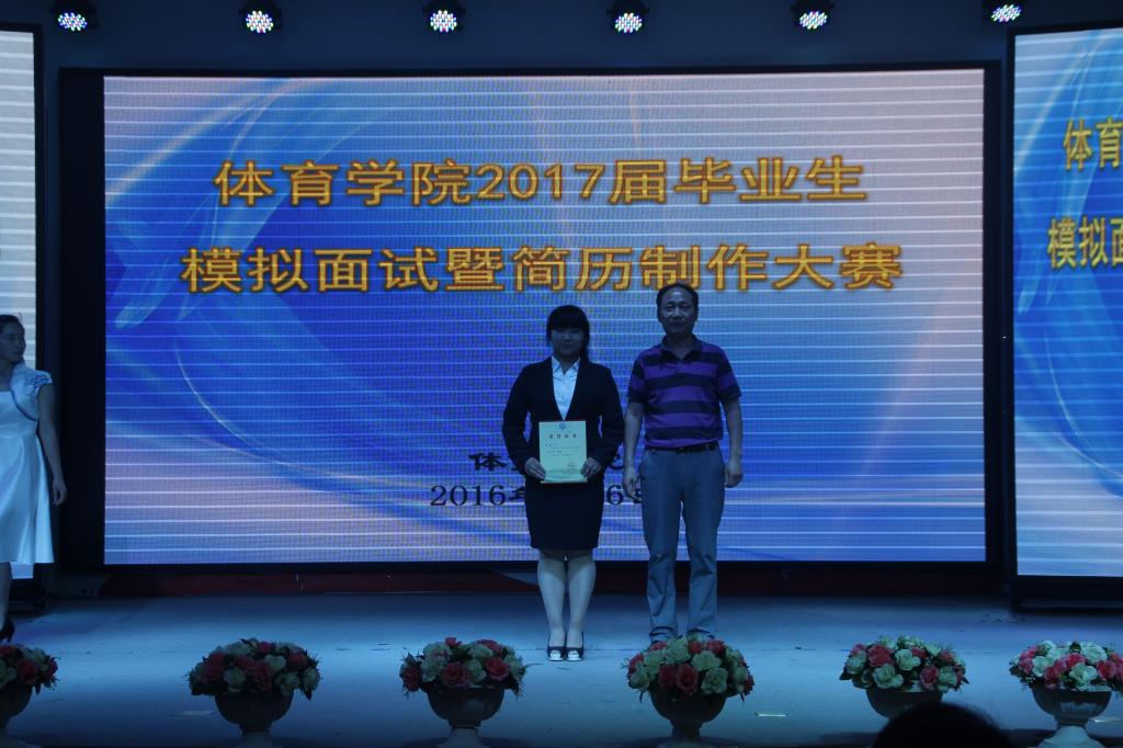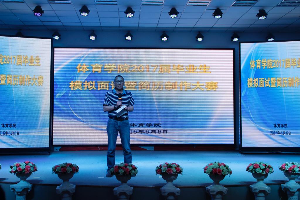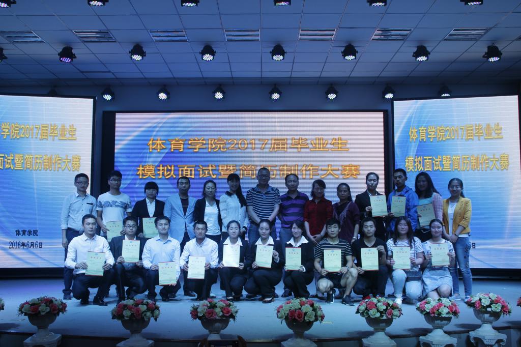 学院根据学生处的工作安排结合学院实际情况,从3月底开始策划大赛,4月底开始组织实施,模拟面试与简历制作大赛同时进行。在13级全体同学的参与下,经过班级初赛,年级复赛,最终进入决赛。决赛设置了中小学体育老师和社会体育指导员两个职位。12名面试者通过自我介绍、说课或专业技能展示以及考官问答三个环节展现自我。各位评委针对学生说课内容、个人能力规划以及简历制作等方面进行提问,并传授了相应的经验和技巧。模拟面试结束后,牛保明老师,杜学工老师和张智颖老师分别从大赛的筹备组织情况,说课及专业展示,面试准备与临场应变等方面进行了点评。最终,周婷同学获得模拟面试一等奖,孙胜、鞠和胜和鲁琼峰同学获得了简历制作大赛一等奖。