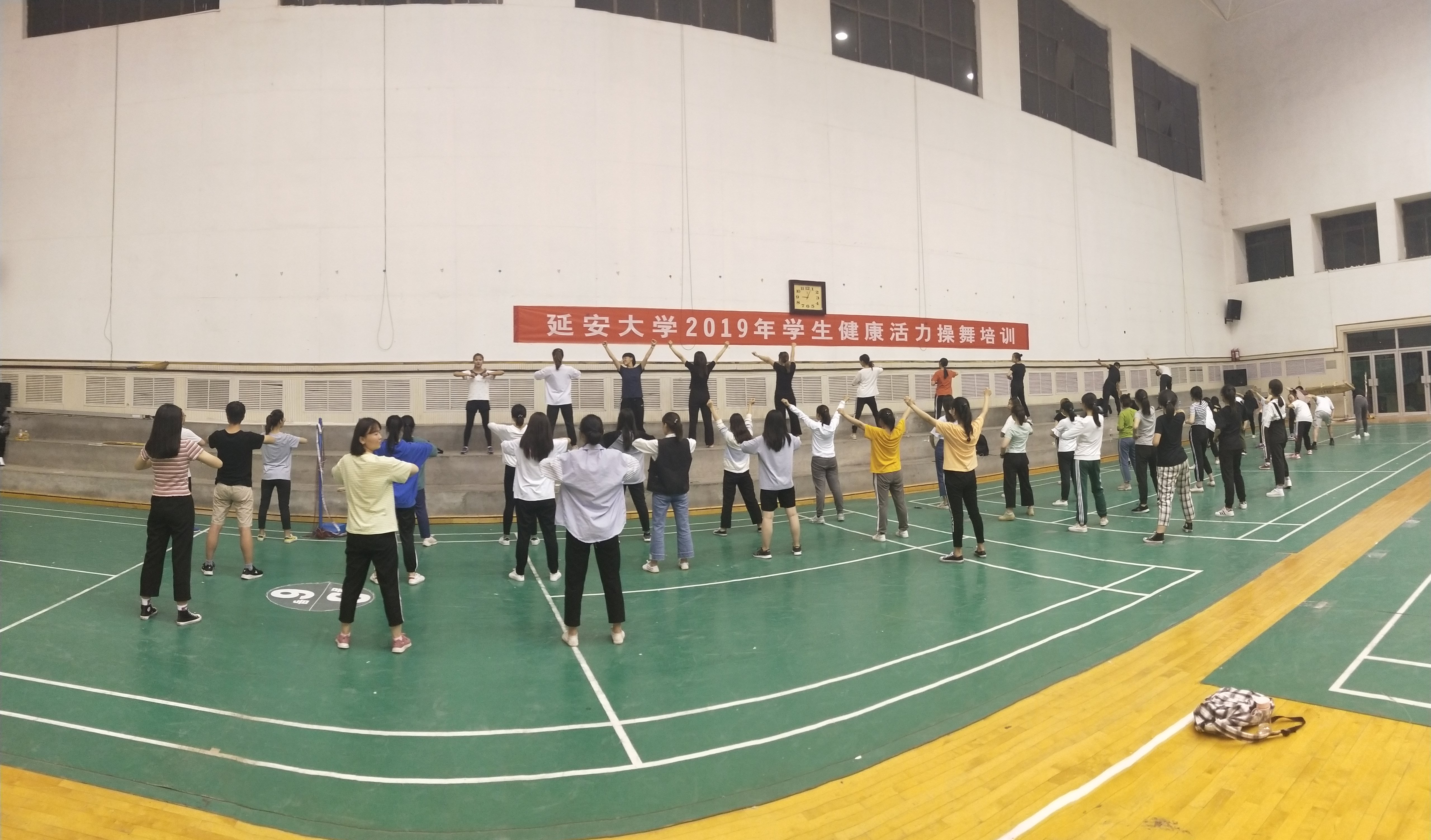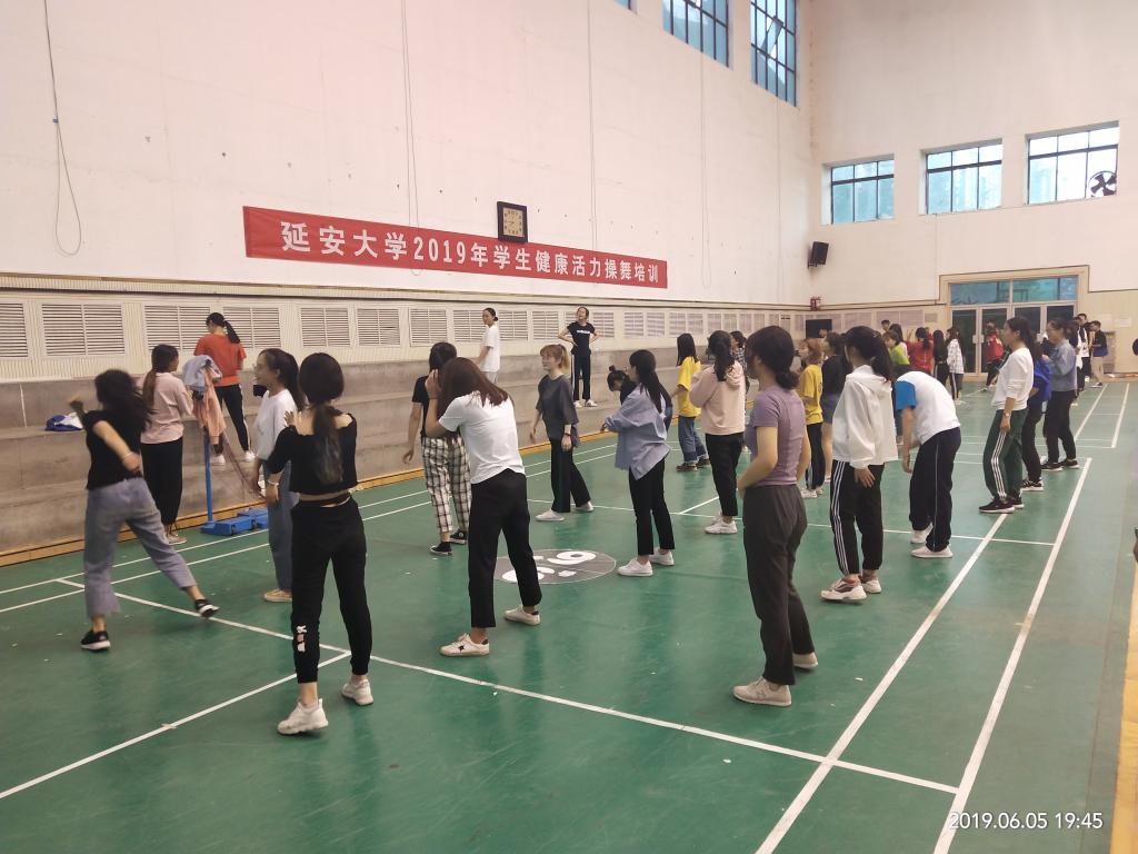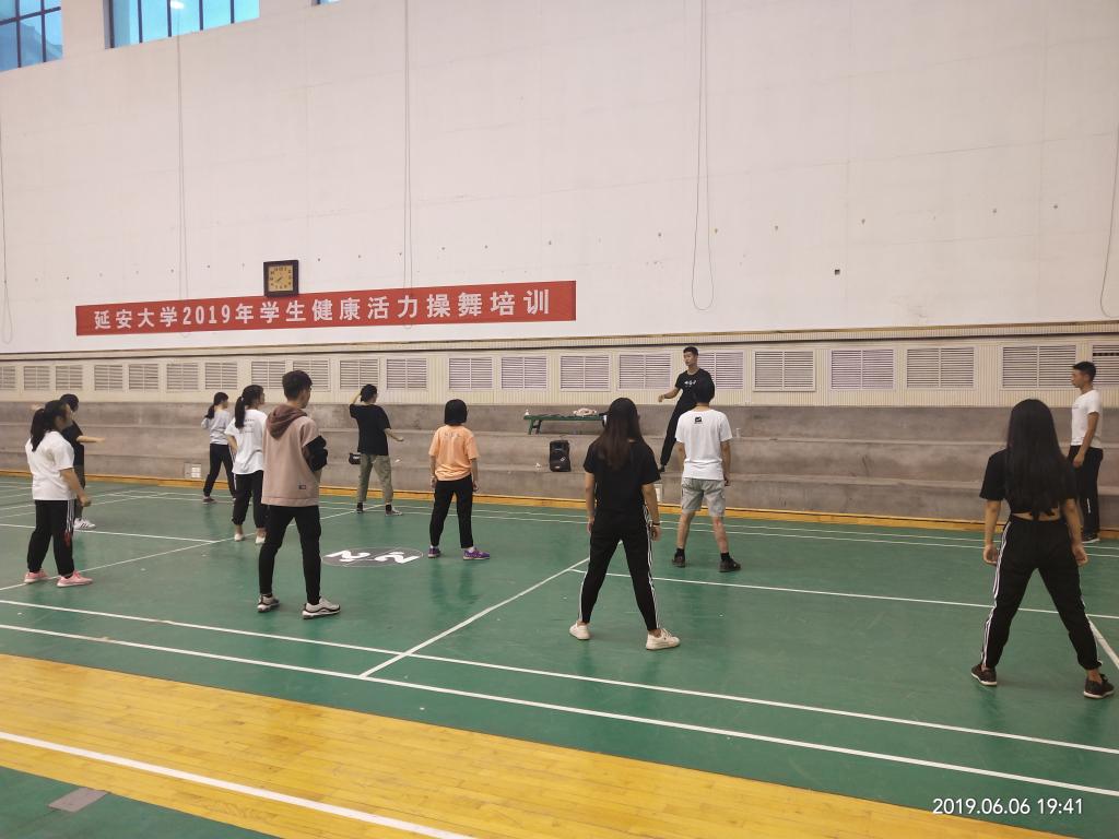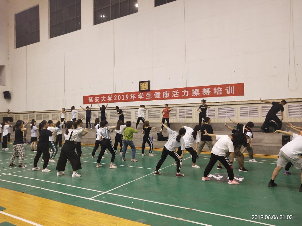 为积极准备2019年学生健康活力大赛,普及啦啦操、街舞、爵士、广场舞项目,提高学生竞技水平,由校体育工作委员会主办,3344222全新讯网官方网承办,3344222全新讯网官方网体操教研室协办的2019年3344222全新讯网官方网学生健康活力操舞培训于2019年6月4日至6日在校本部体育馆内举行。来自13个院系的160余名学生参加此次培训,培训讲师由校健美操代表队教练张智颖、宗延伟以及高鹏三位老师共同担任。