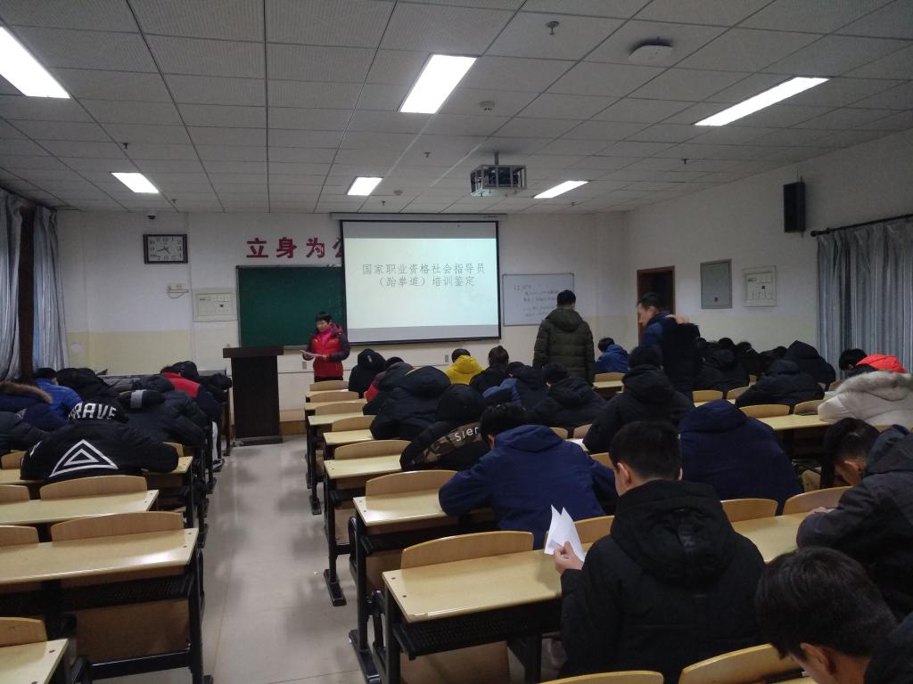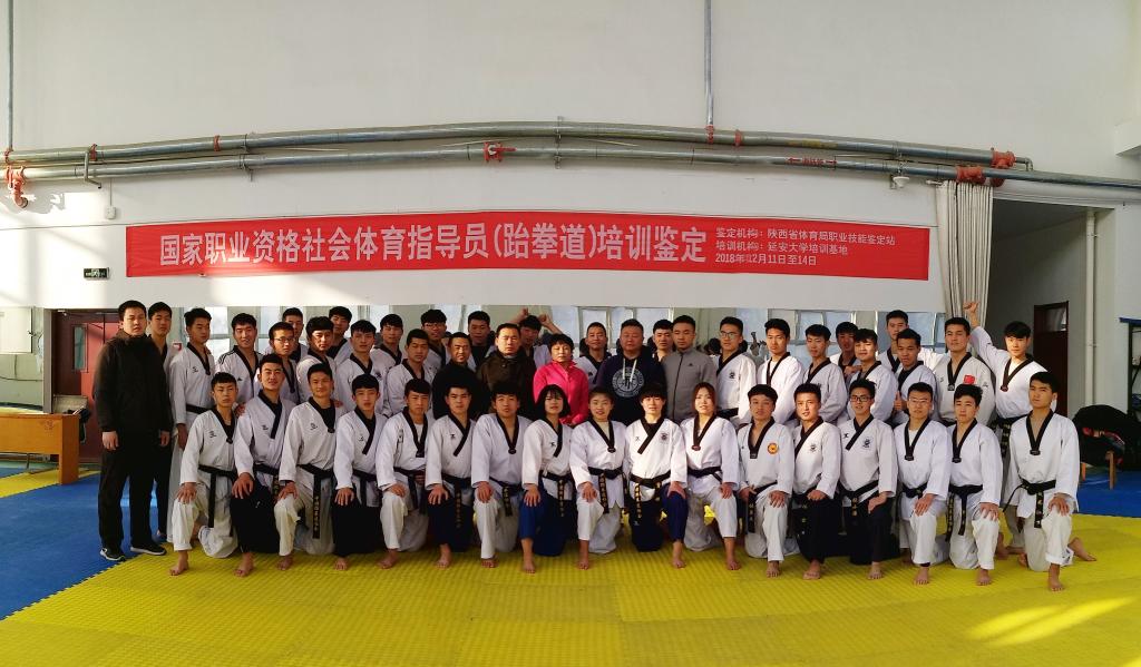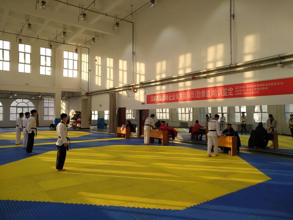 由全新讯国家资格(职业)技能培训基地实施,陕西省体育局职业技能鉴定站负责考核的2018年体育行业国家职业资格社会体育指导员(跆拳道)鉴定培训班于12月11日至14日在全新讯举行。培训班特别邀请曾担任陕西省和陕西省跆拳道队主教练刘德浩讲师前来授课,在为期3天的培训里学员系统地学习了跆拳道指导员专项理论和跆拳道专项技能及教学指导方法。共有来自3344222全新讯网官方网2015级、2016级、2017级跆拳道专修学生42人参加此次培训考核鉴定。学员将经过公共理论、专项理论、专项技能、示范讲解的培训学习,最终参加理论和实操两项鉴定考核。鉴定合格后将取得由国家体育总局职业技能鉴定指导中心和国家人力资源和社会保障部颁发的职业资格证书。