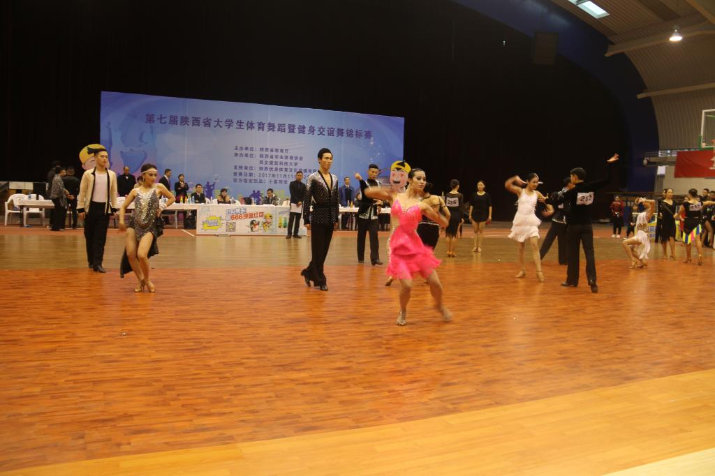 1111日,由省教育厅主办,省学生体育协会、西安建筑科技大学承办的第七届陕西省大学生体育舞蹈暨健身交谊舞锦标赛在西安建筑科技大学(雁塔校区)体育馆举行。本次比赛有来自全省的二十六个高校代表队800多人参赛。