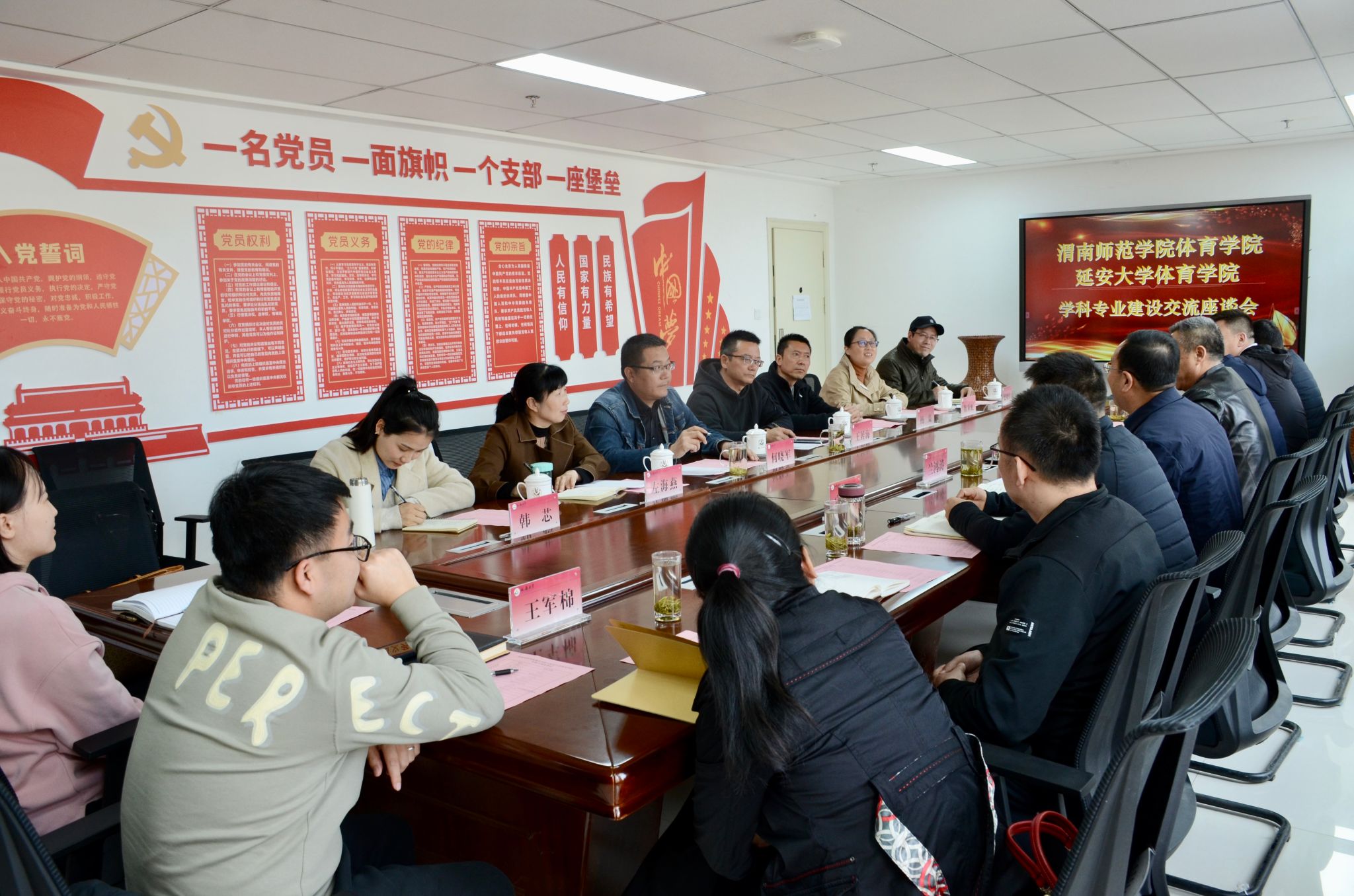 3月15日下午,全新讯3344222全新讯网官方网与渭南师范学院3344222全新讯网官方网在学院会议室举行了学科专业建设交流座谈会,渭南师范学院3344222全新讯网官方网院长王居海,副院长杨枭,理论教研室左海燕,工会主席何晓军,实验室主任陈彩虹,专业建设负责人史晓伟,基础教研室主任韩芯,全新讯3344222全新讯网官方网党委书记兰鸿涛,院长宗有智,副院长宗延伟、薛亚东、张应龙,体育教育系主任杜春斌,运动康复系主任杨磊,理论教研室主任王军棉等参加了会议,会议由院长宗有智主持。