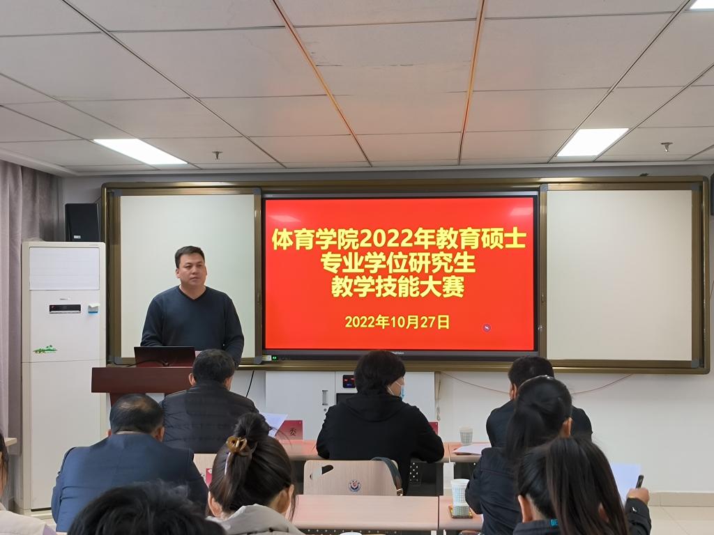 为适应新形势教学改革,落实2022体育与健康课程标准,提升教育学硕士专业学位研究生的教学与实践能力,10月27日下午,3344222全新讯网官方网在研究生教室举行了2022年教育硕士专业学位研究生教学技能大赛。担任本次大赛的评委杜春斌、马永军、杨学达、张红玲、王军棉5名副教授,薛亚东副院长主持大赛,在校体育教育训练学研究生和体育教育专业本科生观摩比赛。