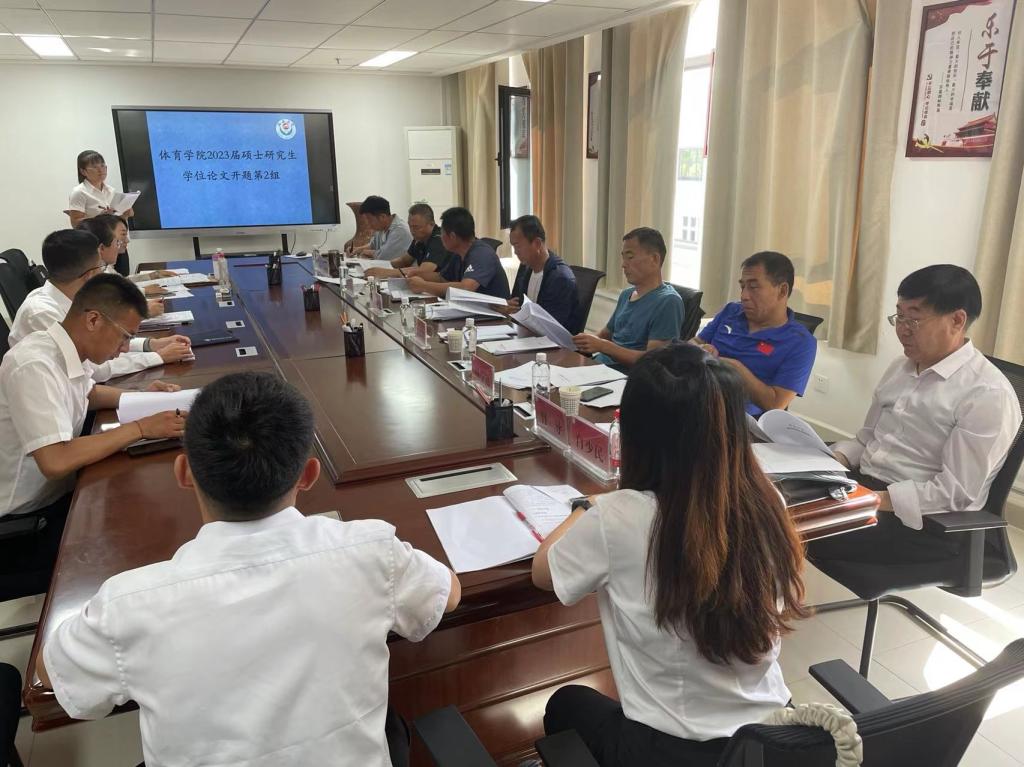 6月11日,2023届硕士研究生学位论文开题答辩工作分三组分别在学院研究生教室、党员会议室和学院会议室进行,第一组由西安3344222全新讯网官方网运动休闲学院院长杨建设教授担任答辩主席,卢忠瑾教授、杜学工副教授、杜春斌副教授、王军棉副教授担任答辩评委,苏清芳副教授担任答辩秘书。第二组由宗有智教授担任答辩主席,李世荣教授、李鸿亮副教授、马永军副教授、杨学达副教授担任答辩评委,许荟蓉副教授担任答辩秘书。第三组由卢耿华教授担任答辩主席,张智颖教授、薛宇副教授、张应龙副教授、郭宏焘副教授担任答辩委员,刘冉副教授担任答辩秘书。研究生教育督导白少民教授到会督导聆听答辩。