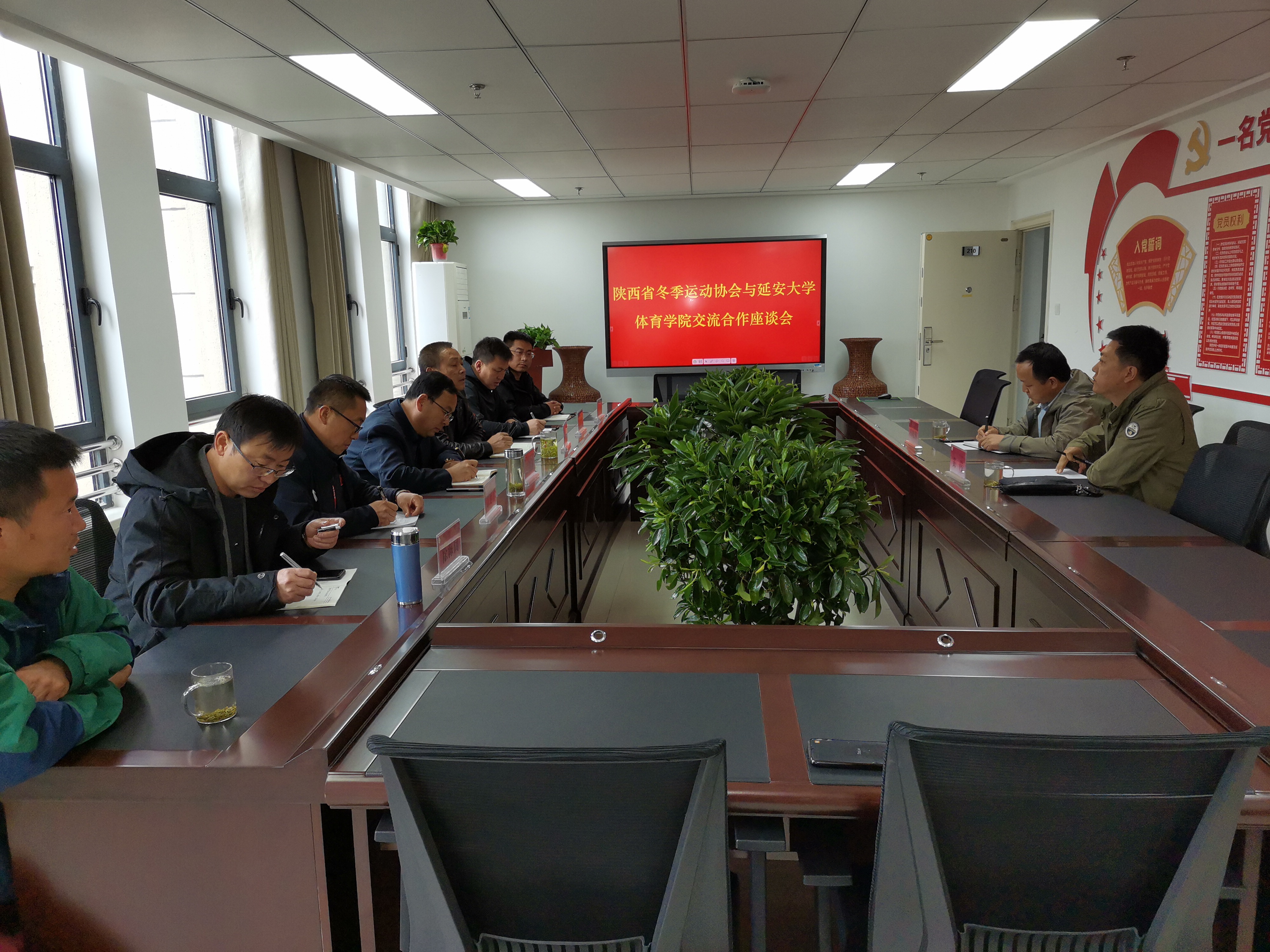 4月13日下午,陕西省冬季运动协会与3344222全新讯网官方网在学院会议室举行了交流合作座谈会,陕西省冬季运动协会秘书长黄伟、高山滑雪委员会主任杨小辉、3344222全新讯网官方网全体领导班子、学院教师马滔参加,会议由学院党委书记兰鸿涛主持。