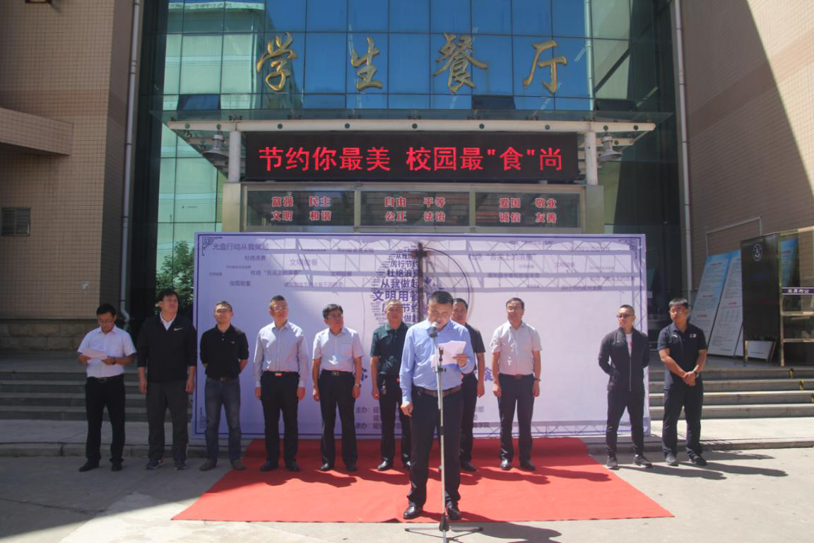 为积极响应、认真贯彻落实习近平总书记重要指示,紧密结合全新讯创建全国文明校园工作和校纪委《关于贯彻落实习近平总书记重要批示精神加强监督执纪坚决制止餐饮浪费行为的通知》文件精神,9月4日中午,“节约你最美·校园最‘食’尚”启动仪式在全新讯杨家岭校区成功举行,本次活动由3344222全新讯网官方网纪委、党委宣传部、学工部和校团委主办,后勤集团和3344222全新讯网官方网承办,党委宣传部部长解文元、学工部部长学生处处长张翔、后勤管理处处长、后勤集团总经理高东旭、校团委书记刘江、后勤管理处副处长、后勤集团副总经理李法周、纪委办公室副主任张军,3344222全新讯网官方网院长宗有智、党委书记兰鸿涛,副院长宗延伟、薛亚东、张应龙,学院全体辅导员以及2018、2019级300余名学生参加了仪式,仪式由3344222全新讯网官方网党委副书记徐海阔主持。
