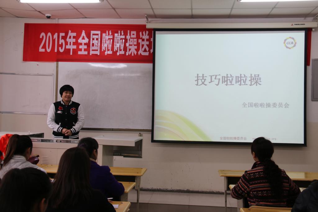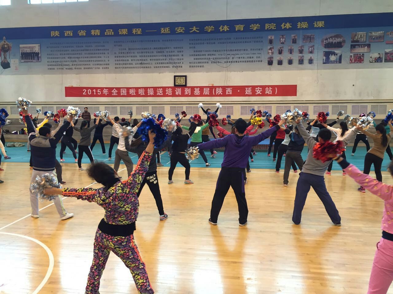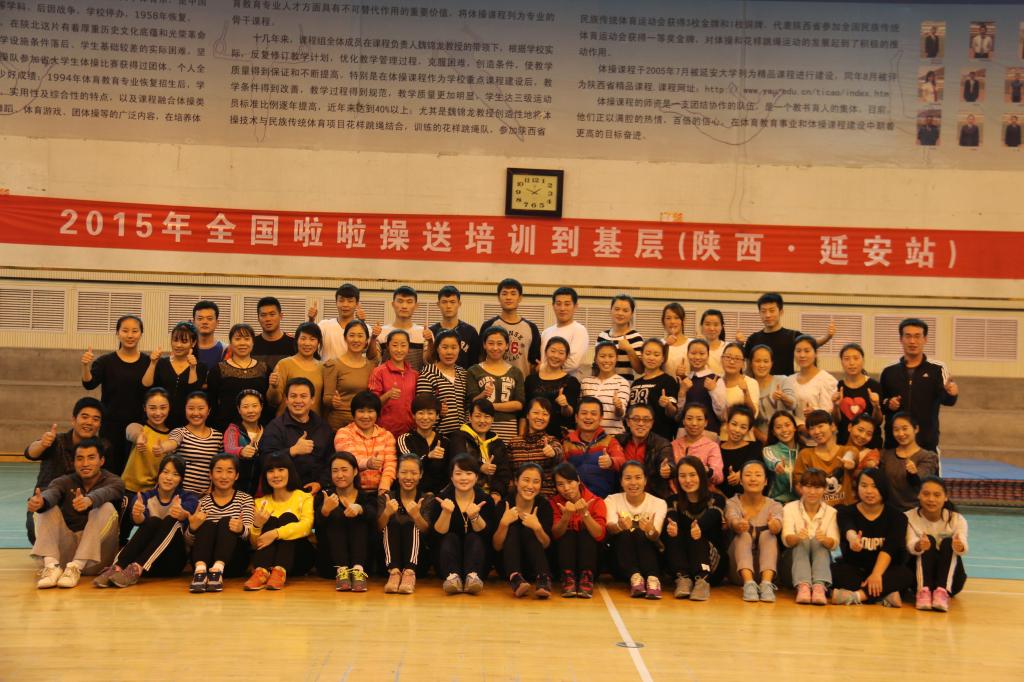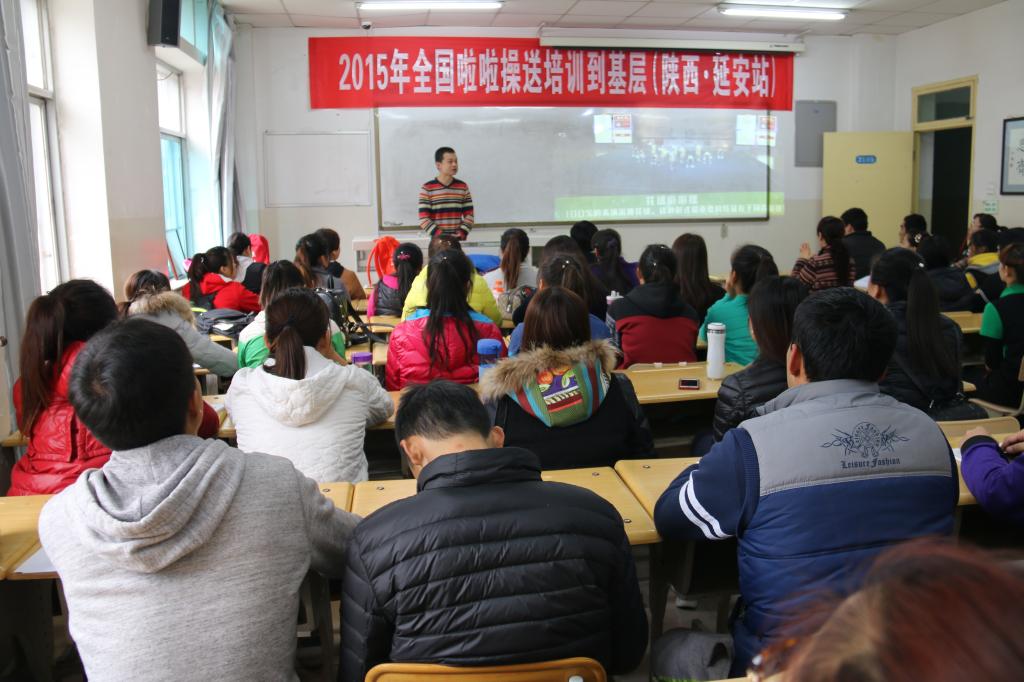 由陕西省体操协会、陕西省啦啦操委员会主办,延安市体育局、延安市啦啦操委员会和全新讯承办的2015年全国啦啦操送培训到基层(陕西.延安站)培训班于11月14日至15日在全新讯举行。陕西省啦啦操委员会选派3名优秀导师对此次培训进行授课和指导,共有来自延安市大、中、小学教师和学生及啦啦操爱好者50余人参加。