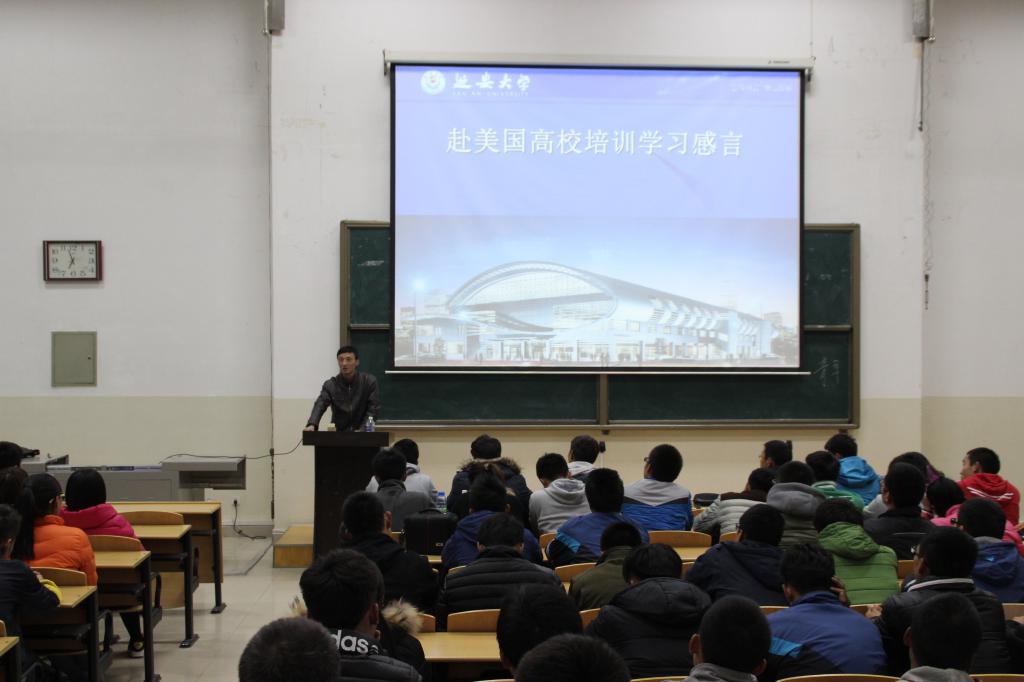 报告中,郑院长就美国高等教育的历史、现状,美国高校的管理体制和运行机制,美国高校在人才培养、科学研究和社会服务等方面作了简要介绍,详细解读了美国高校体育教育的理念、现状、专业体育课程设置的特点等方面的情况,在此基础上感悟出中美两国在教育、制度、文化、历史、政治及多元化社会等方面的差异,引发同学们深刻反思。