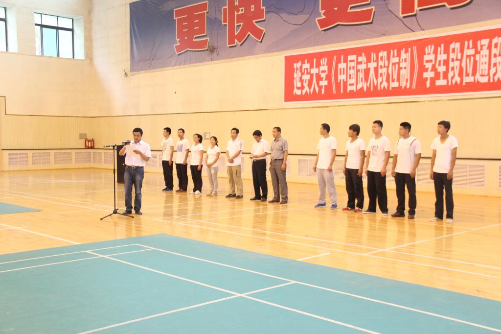 全新讯自2013年被陕西省教育厅确定为首批批陕西省中国武术段位制学生段位考评试点学校以来。根据试点学校工作实施方案,6月14日由全新讯体育工作委员会主办,3344222全新讯网官方网承办的第二届《中国武术段位制》学生段位通段赛在校体育馆举行。教务处副处长吕磊同志,3344222全新讯网官方网副院长宗有智同志出席开幕式。共有来自全新讯不同年级、不同专业的100多名学生参加,经过考评组现场打分,最终有103人通过考评,成绩合格,授予中国武术三段(金鹰徽章)。