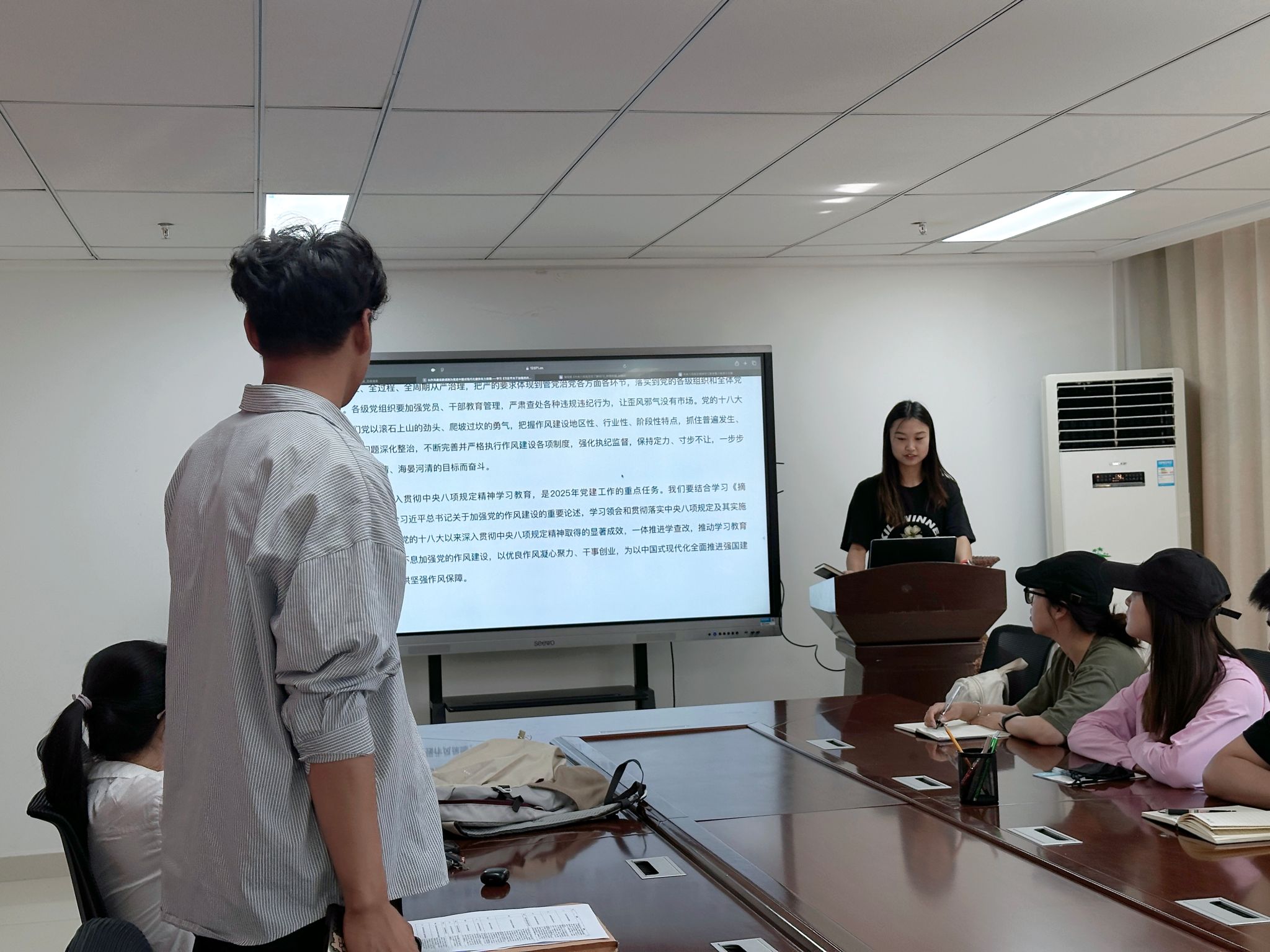 党员同志们结合学习工作实际展开了讨论,党员教师表示,要深刻领会作风建设在全面从严治党中的重要意义,将廉洁自律贯穿于教育教学全过程,以身作则,切实改进工作作风,服务发展大局。学生党员表示,要进一步提高思想认识,增强廉洁自律意识,严守纪律规矩,要以案为鉴,时刻绷紧纪律之弦,在学思践悟中铸牢绝对忠诚,坚定理想信念和使命担当。
