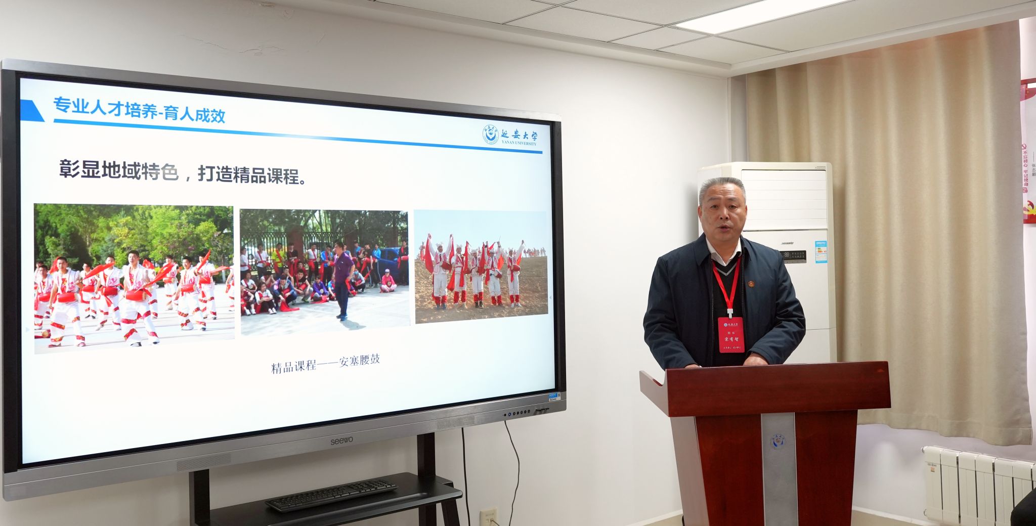 学院院长宗有智从体育教育专业基本情况、专业人才培养、未来工作展望三个方面向专家组作了汇报,他表示,希望各位专家把脉诊断,帮助学院找差距、补短板,学院将认真梳理落实专家组意见建议,全面提高师范生培养质量。