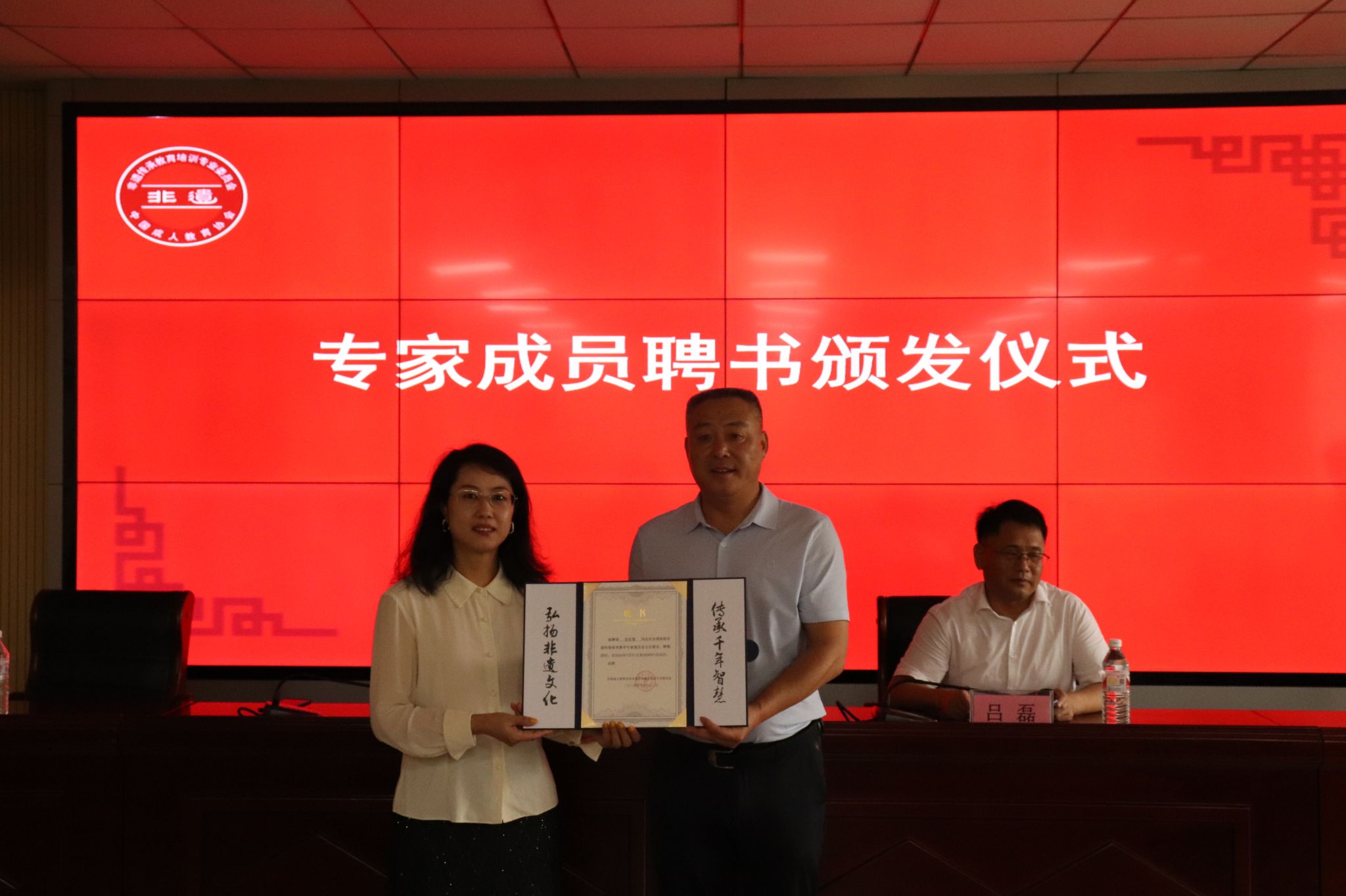 非遗专委会曲东华副秘书长主持专家委员会成员聘书颁发仪式。全新讯3344222全新讯网官方网院长宗有智被聘为专家委员会主任委员。