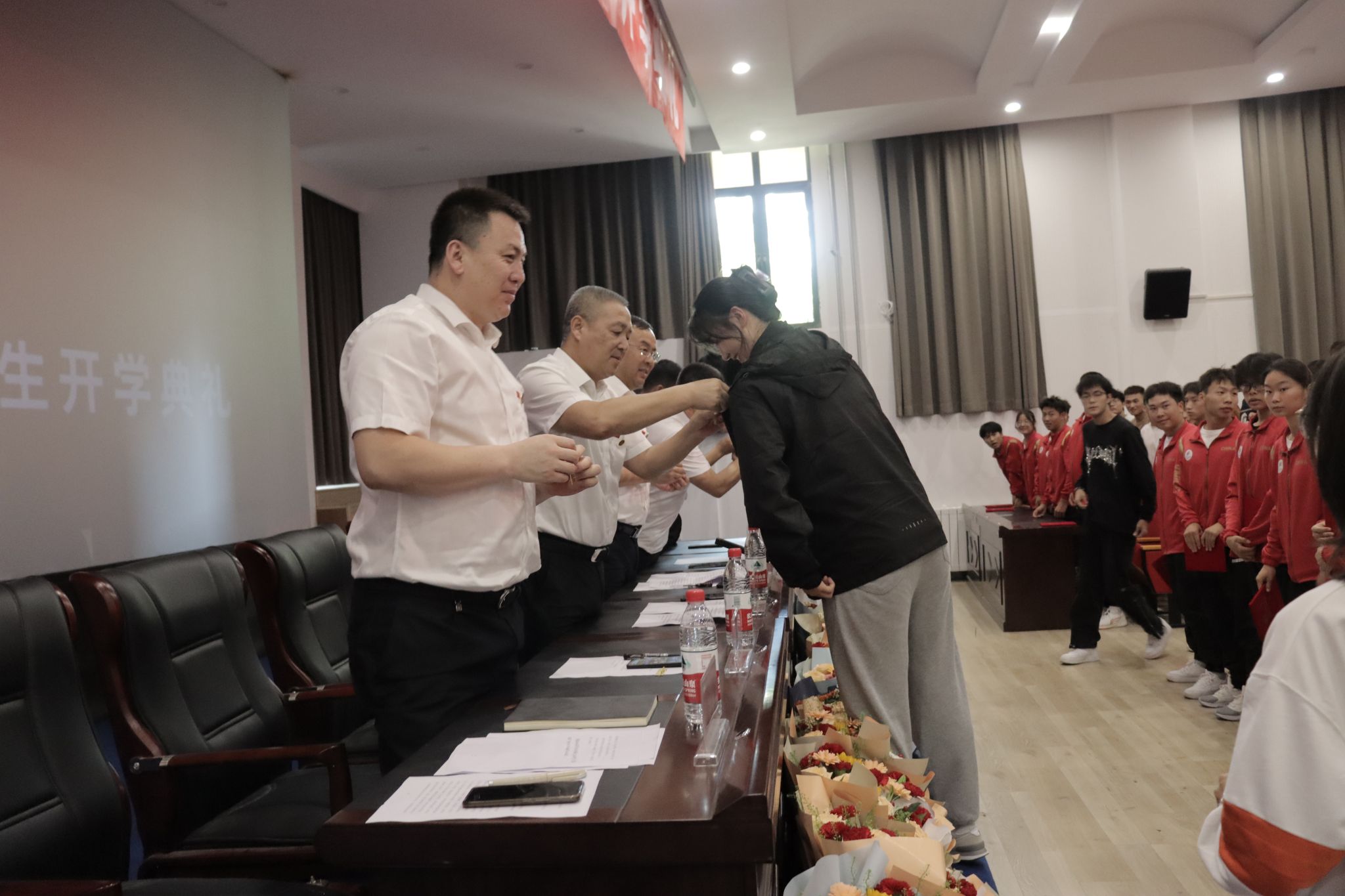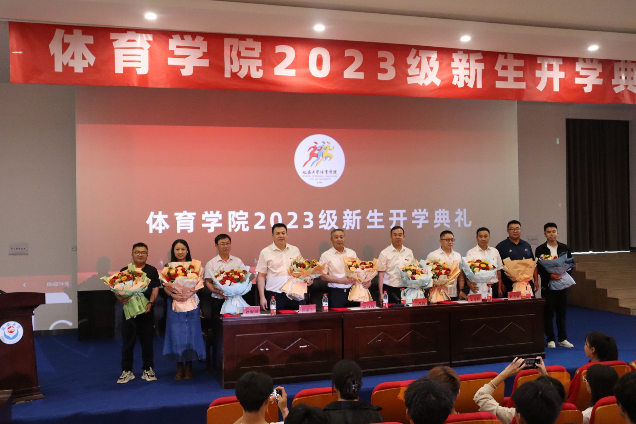 首先,在校学生向在场所有教师表达感恩之情,赠送鲜花。开学典礼在雄壮的国歌声中拉开帷幕,院长宗有智代表学院致迎新词,对2023级新同学的到来表示热烈欢迎。他介绍了学院的发展历程,并勉励同学们尽早适应大学学习生活,学会宽容友善、团结协作、一专多能,继承“体育人”拼搏精神与道德修养并重的一贯传统,善于用体育精神丰富自我、提高自我。