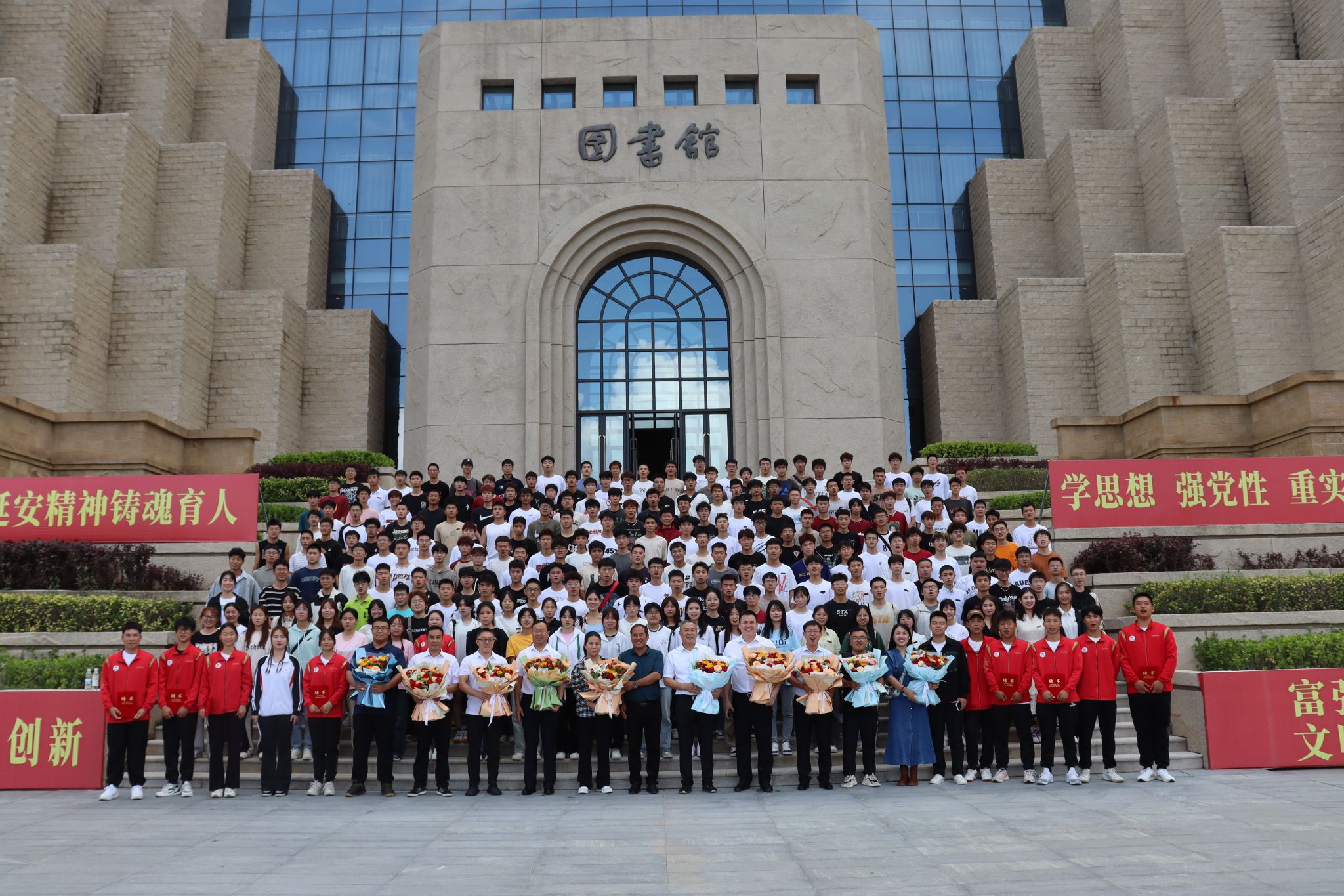 全体院领导为2023级导航学长颁发了聘书,为新生代表佩戴校徽。