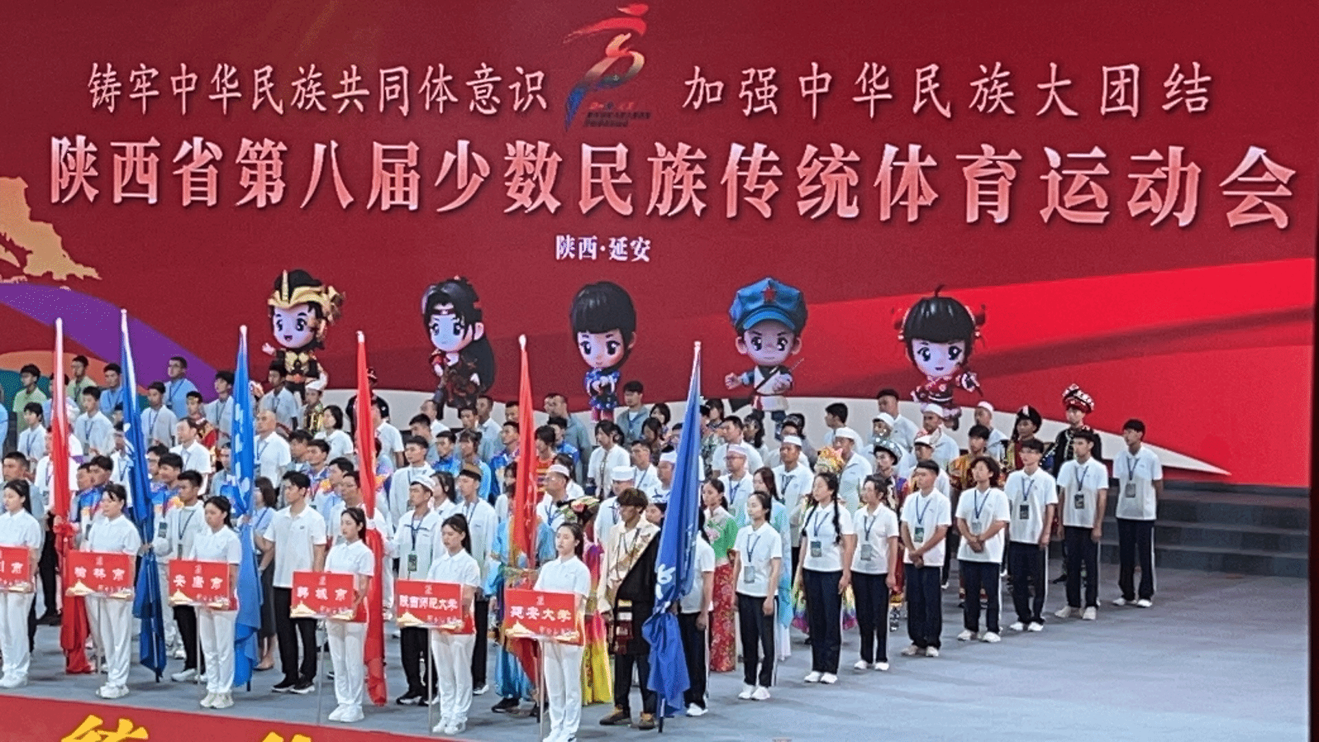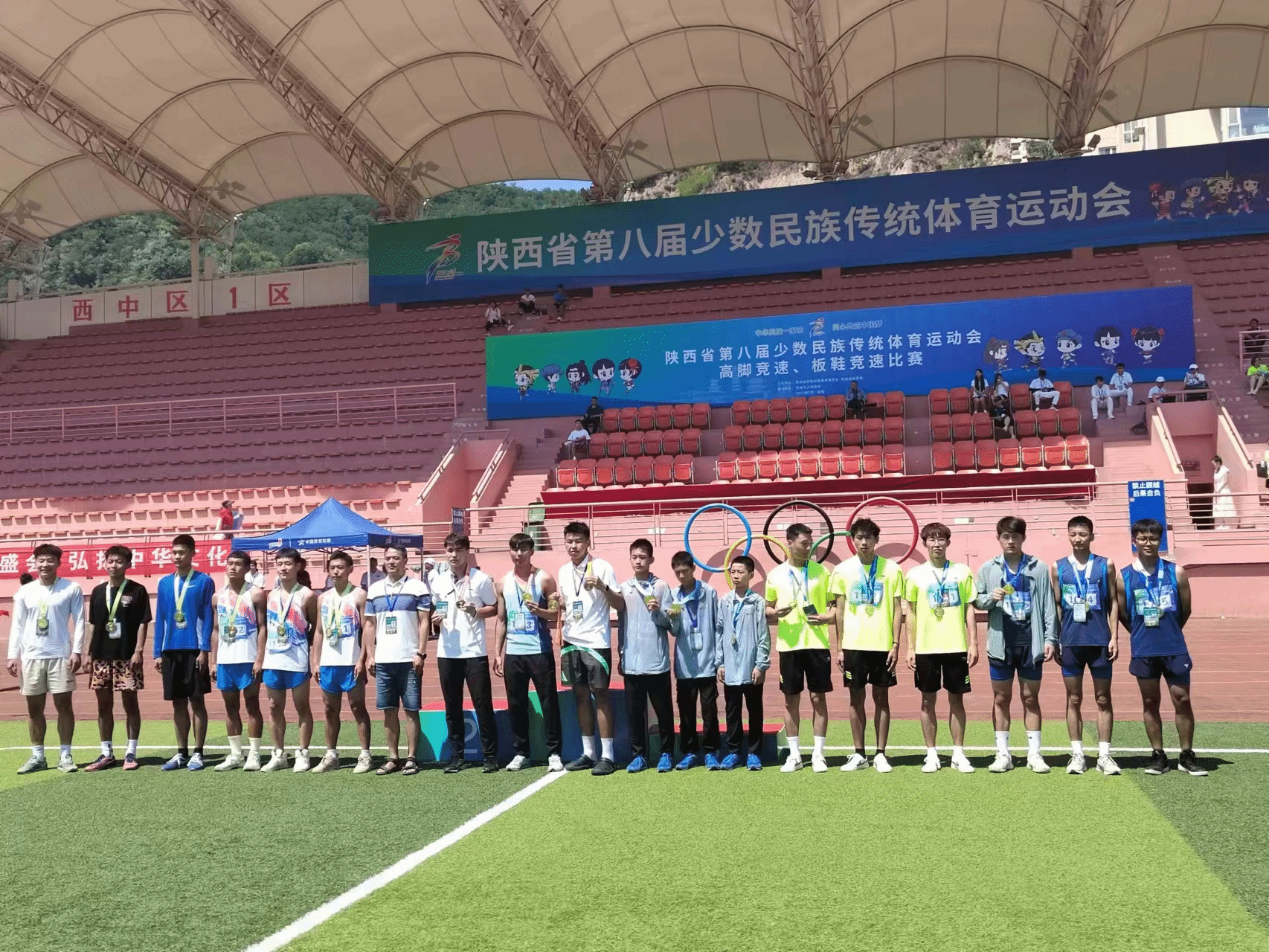 7月18日,陕西省第八届少数民族传统体育运动会在延安大剧院圆满落幕,全省11个市代表队,3344222全新讯网官方网、陕西师范大学等10个高校代表队,共计28个民族的近千名运动健儿参加了比赛,全新讯派出了由3344222全新讯网官方网院长宗有智为代表团团长,3344222全新讯网官方网副院长宗延伟为领队,郝志春等5名教练,阿布都库都斯·阿不都外力等35名运动员组成的代表团,参加了蹴球、花样跳绳等5个大项,21个小项的比赛。