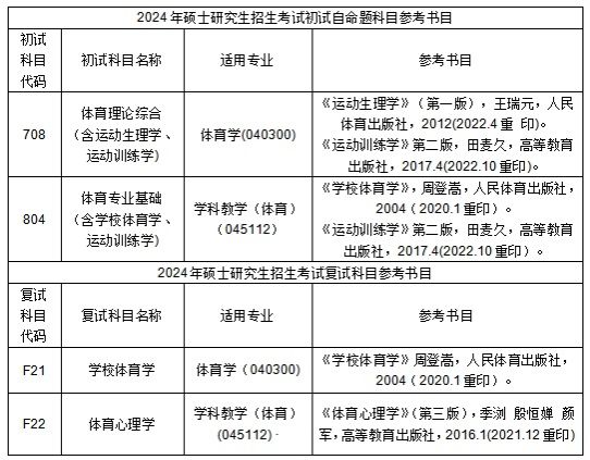 | ①101思想政治理论 | 复试科目:F22运动心理学 |